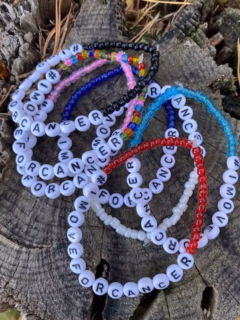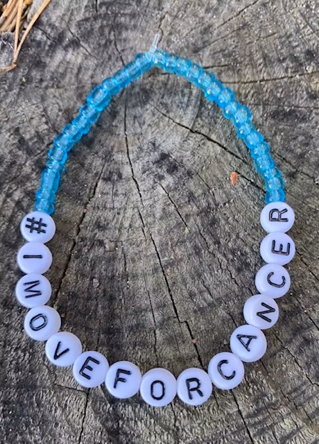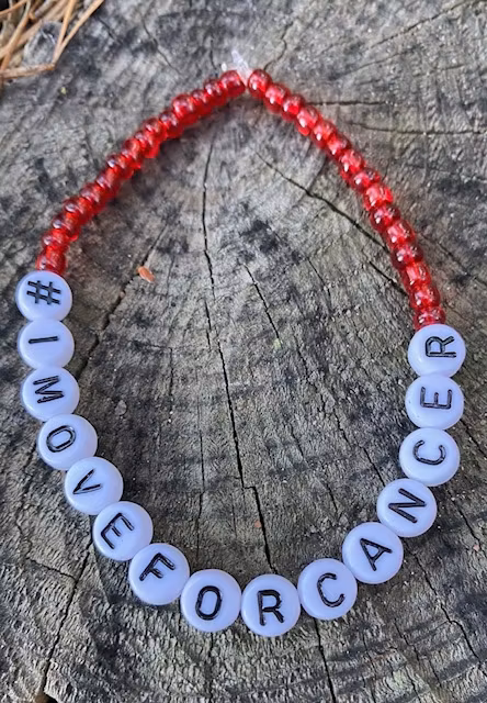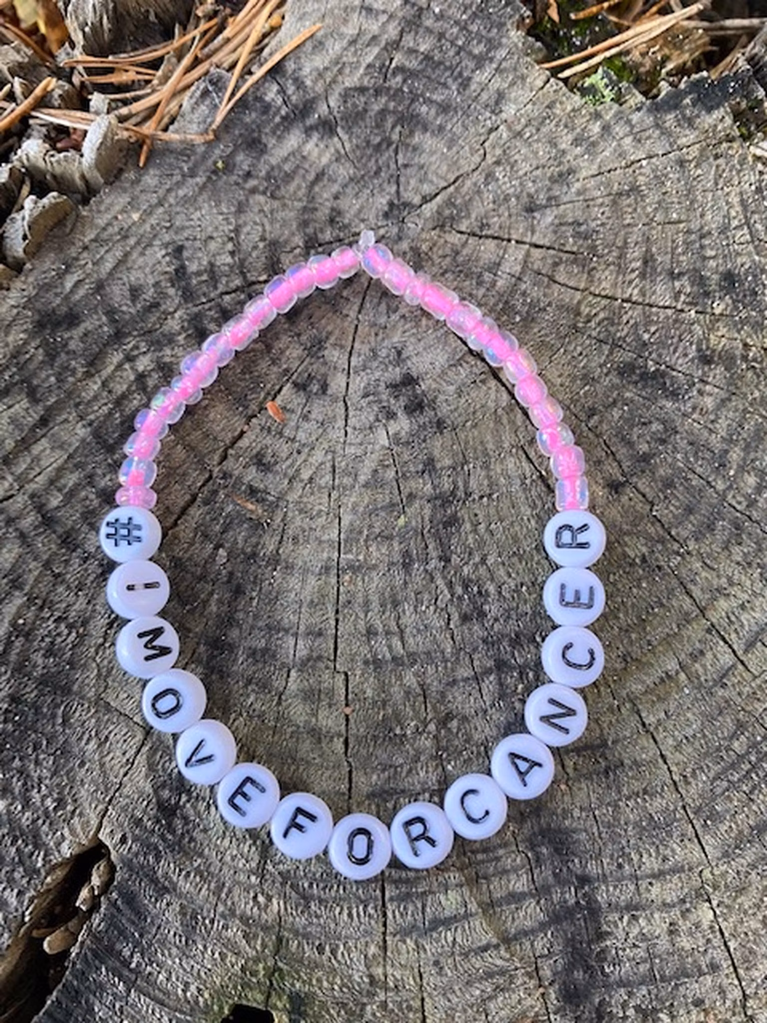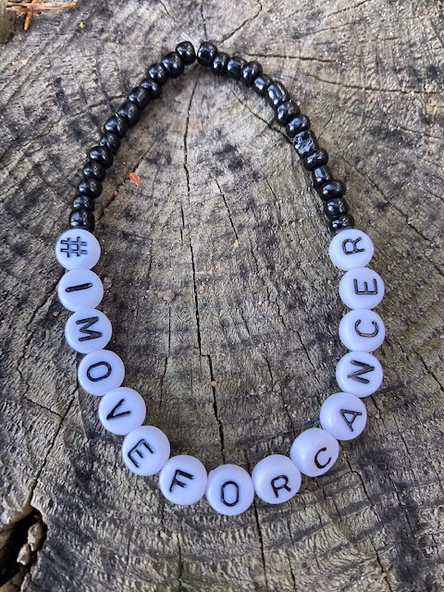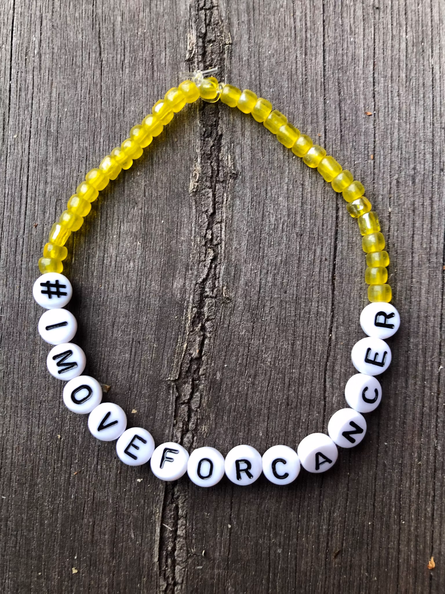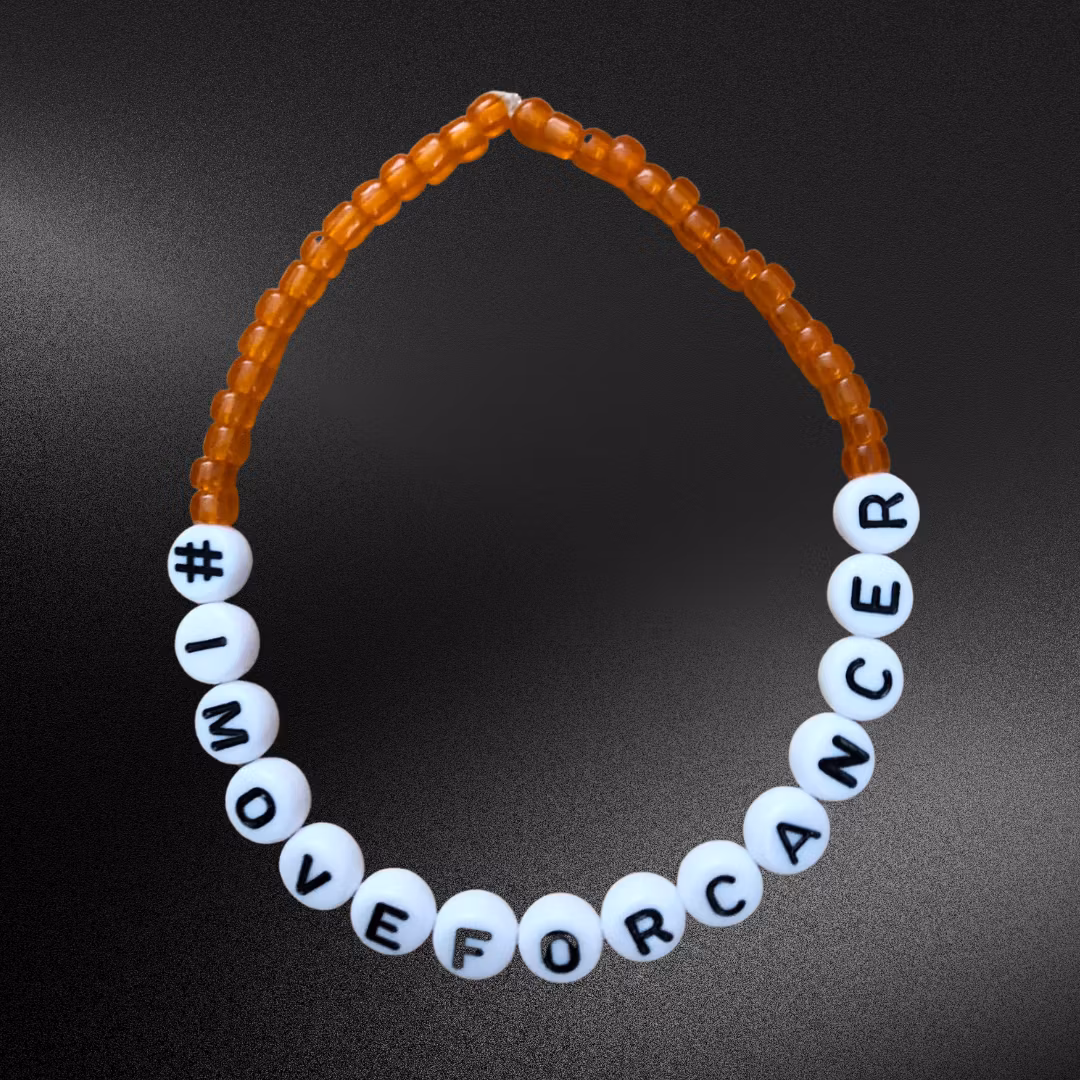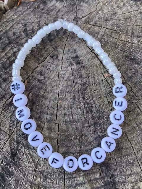Vi säljer dessa armband till förmån för olika cancerförbund via Rörelsen #IMOVEFORCANCERs insamling.