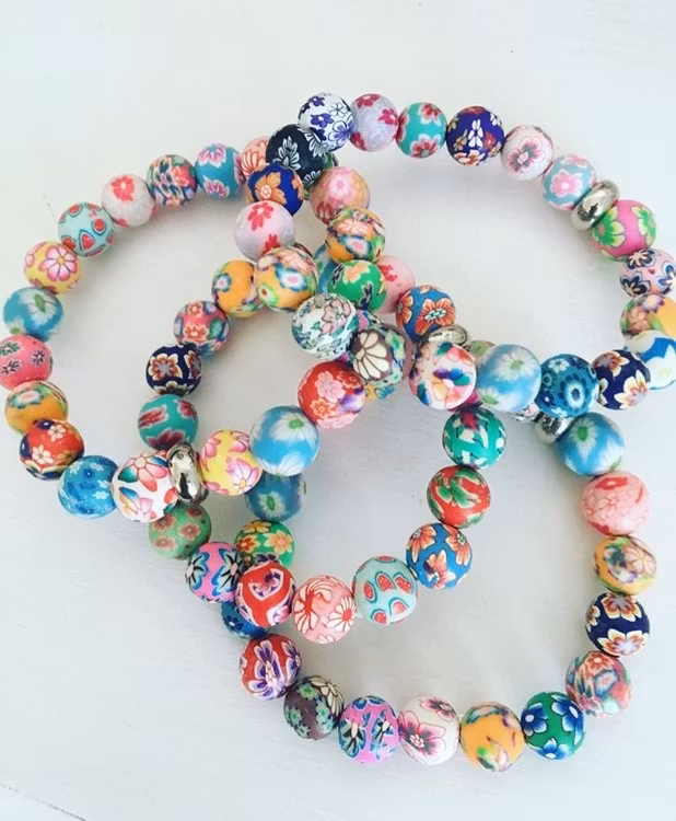 Supersnygga armband i glada färger i handgjorda lerpärlor. Inget är det andra likt.